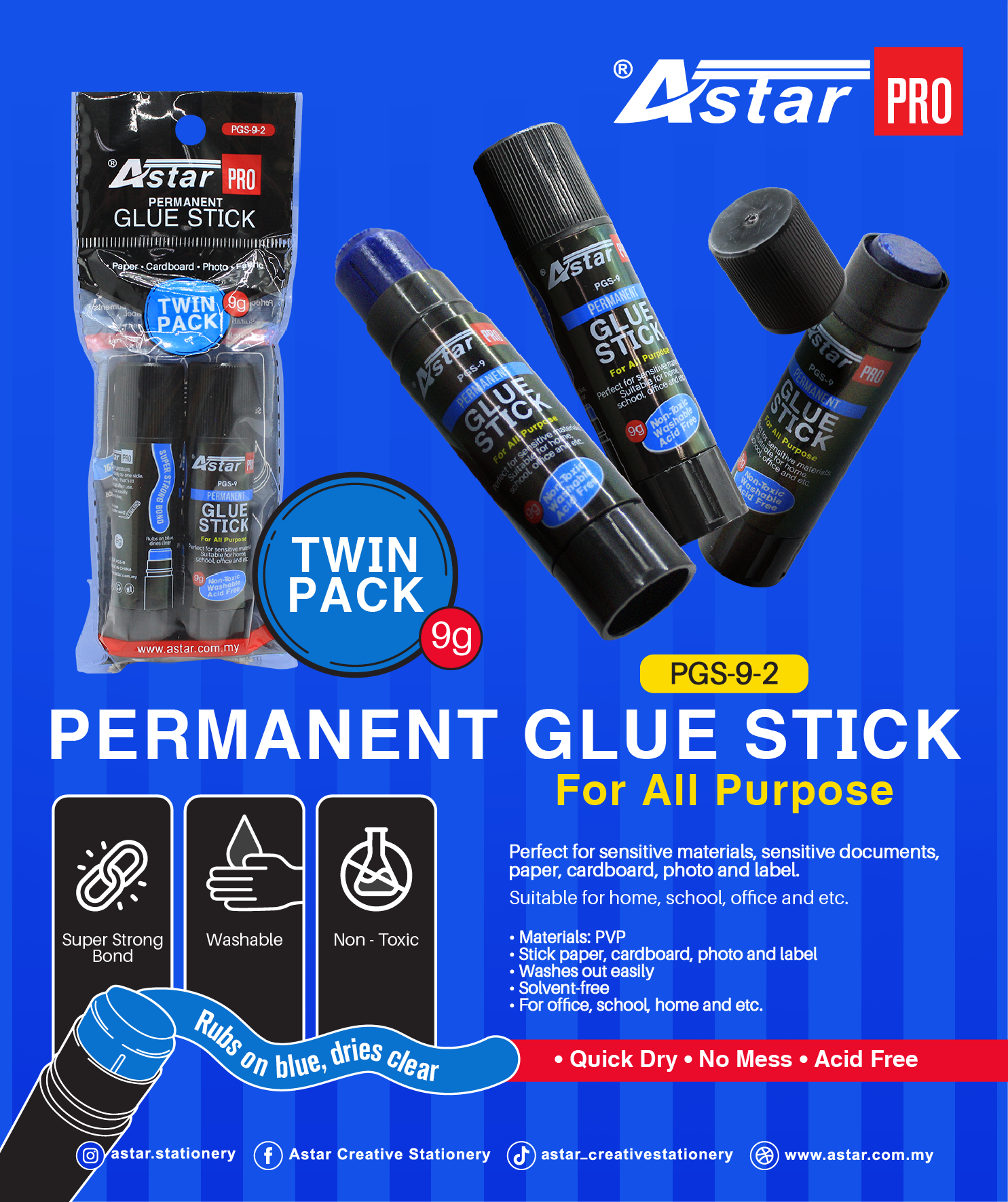 PGS-9-2 - ASTAR PRO PERMANENT GLUE STICK 2 IN 1
